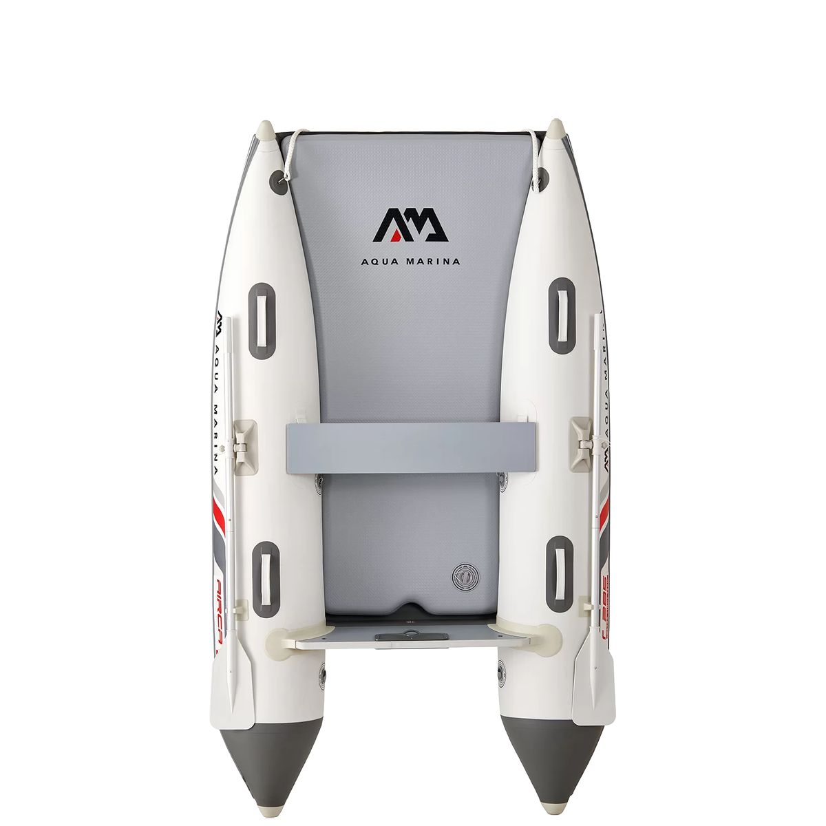 Its unique open bow design allows for easy access and loading, while the tunnel hull shape ensures smooth and balanced navigation even in moderate waters. Built using Aqua Marina’s Drop-Stitch Light technology, the AIRCAT 9’4″ offers an impressively rigid and durable deck surface that performs like a solid hull without the weight. High-frequency welded tube chambers reinforce strength and safety, while the anti-collision rubber strake protects the hull against wear and impact.