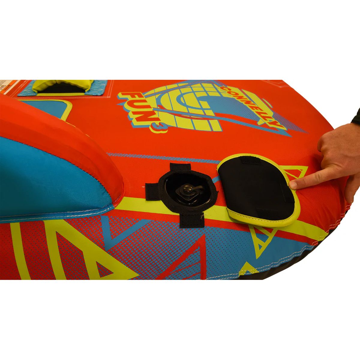 Constructed from durable 420D nylon with a heavy-duty internal bladder, the Fun 3 is built to withstand regular use while providing a secure and comfortable ride. Each rider has soft EVA seat padding for extra comfort, while multiple fully padded handles with knuckle guards and grab straps enhance safety. The mesh drain bottom efficiently sheds water, keeping the tube light and responsive behind the boat. Quick inflation and deflation are made simple with the Boston valve, and a peel-and-stick repair kit is included for convenience. Backed by a 1-year warranty, the Connelly Fun 3 Towable Boat Tube combines durability, versatility, and comfort for endless hours of water fun.